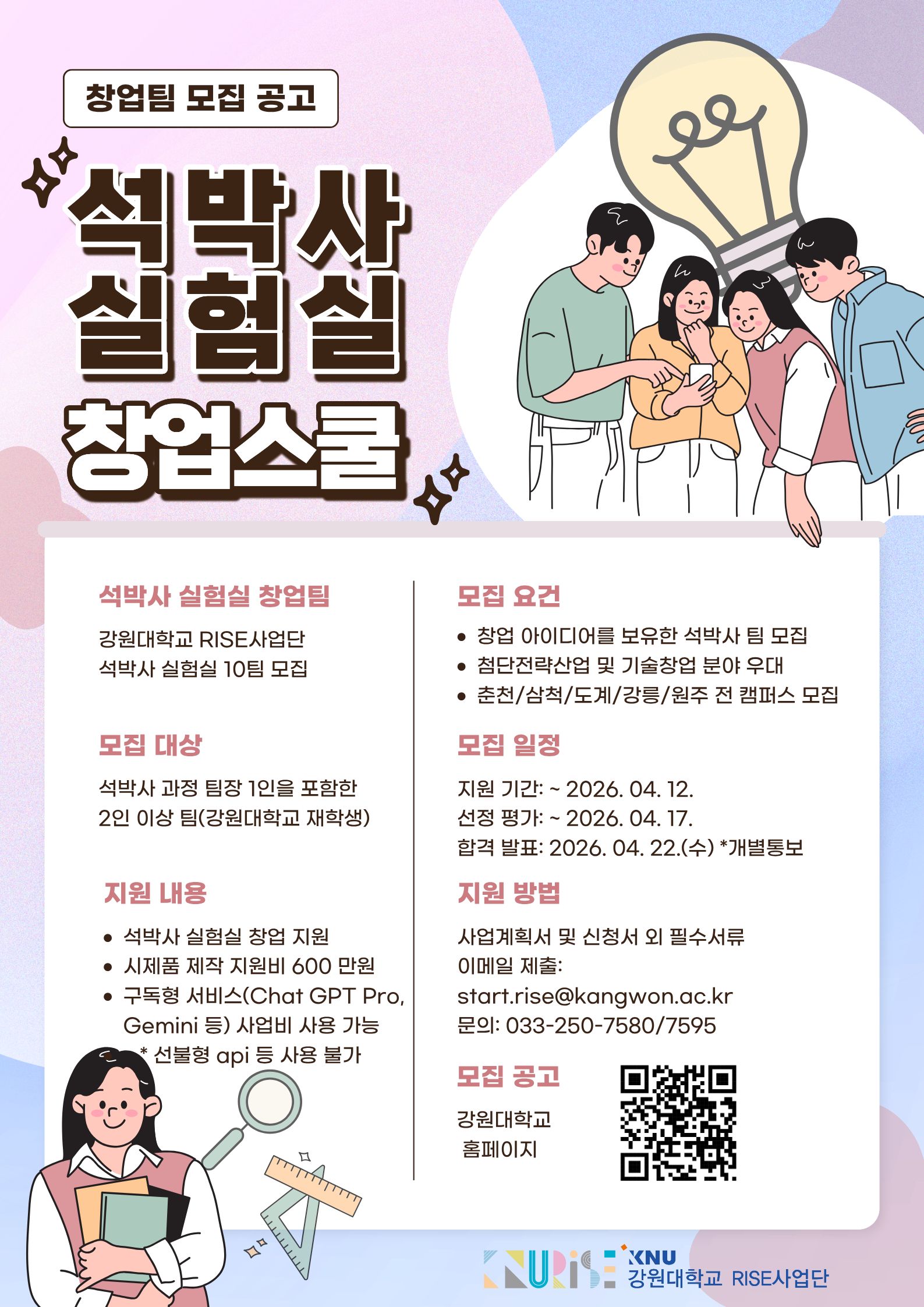 강원대학교 RISE 사업단 2026 석박사 실험실 창업스쿨 공고 안내