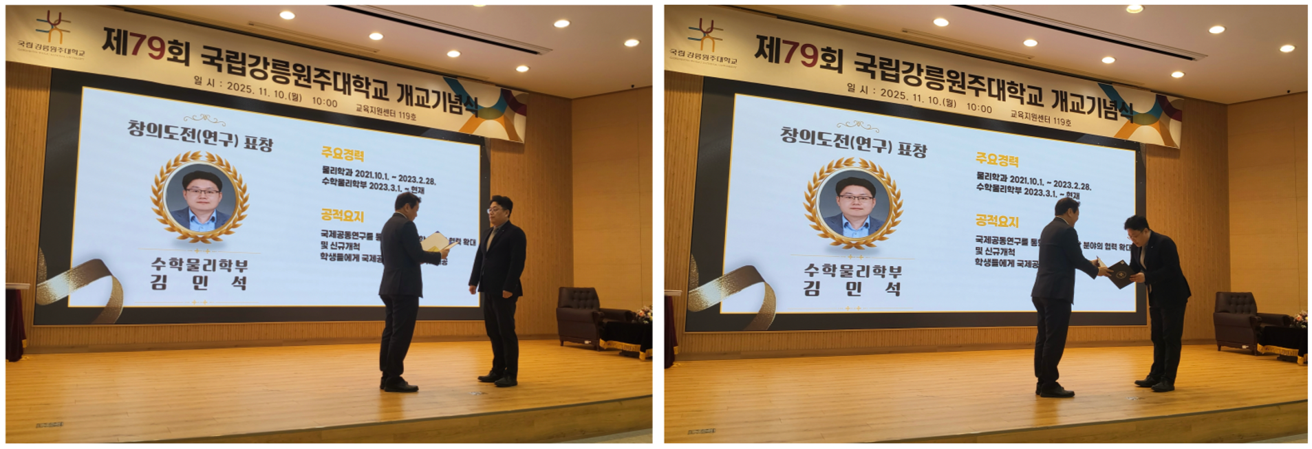 수학물리학부 물리·에너지전공  김민석 교수, '대학발전유공' 표창 (11월10일)